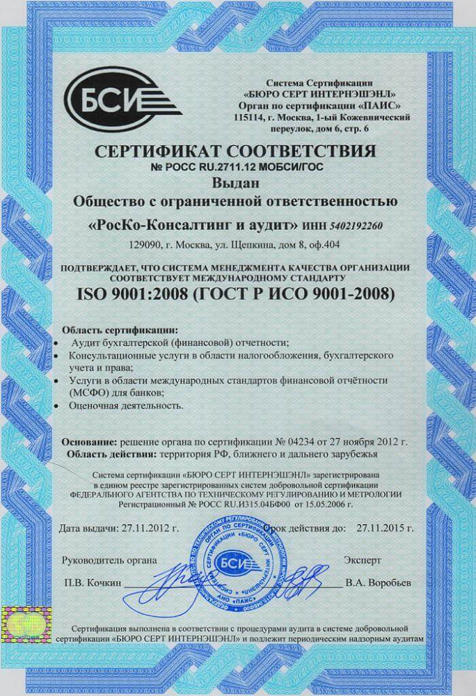 2012年RosСo公司获得了合格证书。本公司质量管理体系符合国际标准ISO 9001:2008(俄罗斯国家标准GOST R ISO 9001-2008)